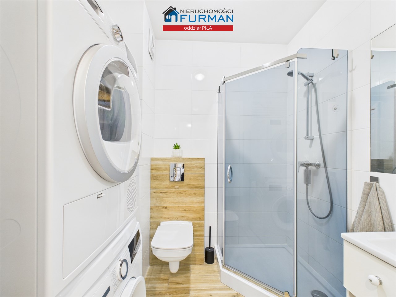 Całość urządzona w spójnym, nowoczesnym stylu i gotowa do zamieszkania bez dodatkowych nakładów finansowych. Łazienka została w pełni wyposażona i posiada prysznic, pralkę oraz suszarkę, co znacząco podnosi komfort użytkowania.