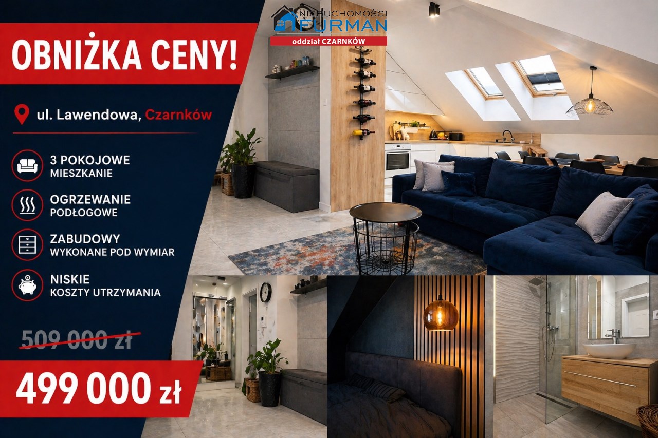 położonego na 2. piętrze (poddasze z praktycznymi skosami) w atrakcyjnej części Czarnkowa – ul. Lawendowa .