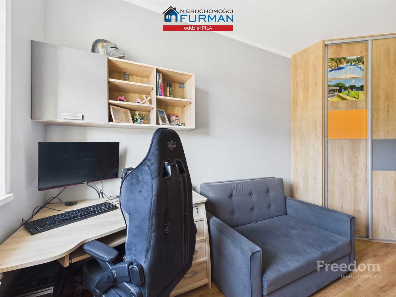 pokój (10,30 m²) idealny na pokój dziecięcy, gabinet lub dodatkową sypialnię – również z zabudowaną szafą,