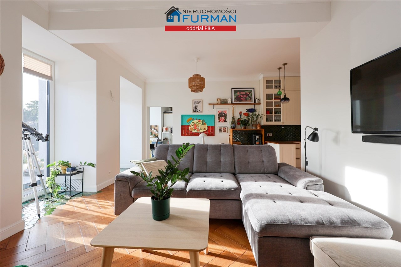 - Salon: Przestronny i pełen światła, połączony z jadalnią oraz kuchnią. Idealna przestrzeń na spotkania z bliskimi, odpoczynek po pracy oraz codzienne życie. - Kuchnia: W pełni wyposażona, harmonijnie komponująca się z częścią dzienną. Funkcjonalna zabudowa pozwoli na wygodne przygotowywanie posiłków.
