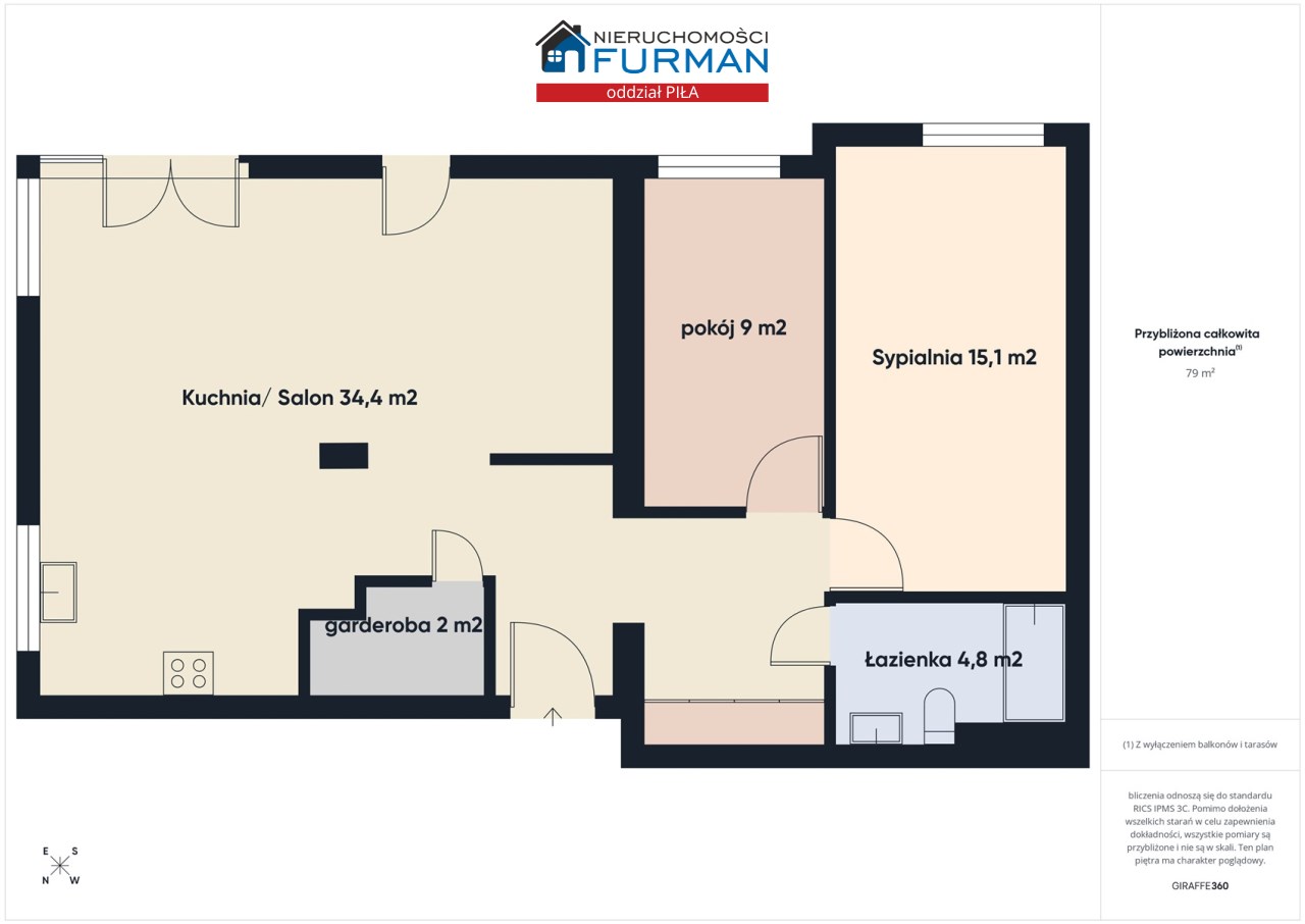 | Powierzchnia pokoi | 34,4; 15,1; 9 m2 |