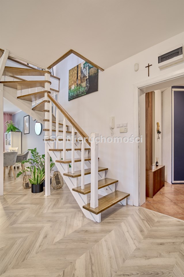 Ta dwupoziomowa nieruchomość o powierzchni 109,5 m2 składa się z 4 pokoi, kuchni, 2 łazienek, przedpokoju.