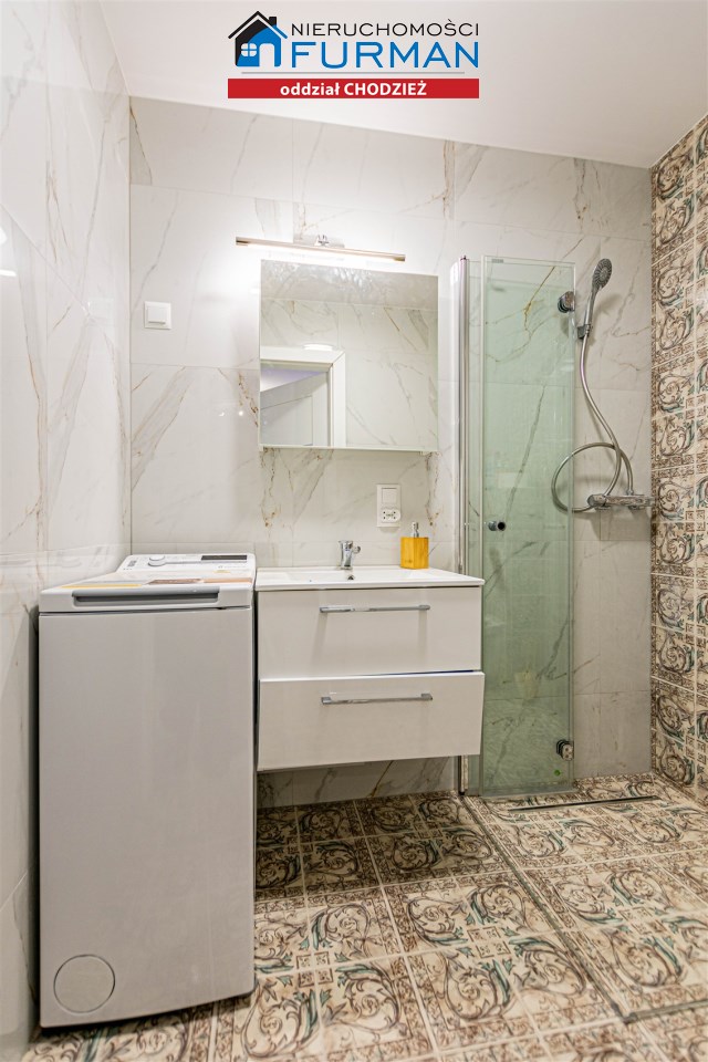 | Wyposażenie łazienki | kabina prysznicowa, lustro, pralka, umywalka, WC |