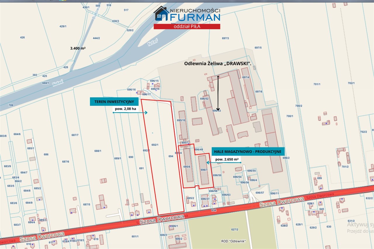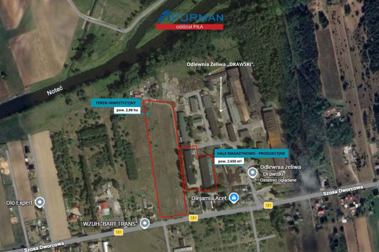 Na sprzedaż funkcjonalny kompleks nieruchomości produkcyjno-magazynowych z zapleczem socjalnym oraz dużym terenem inwestycyjnym o przeznaczeniu usługowym, położony w Drawskim Młynie przy ul. Szosa Dworcowa (powiat czarnkowsko-trzcianecki, woj. Wielkopolskie), w bezpośrednim sąsiedztwie Odlewni Żeliwa „DRAWSKI”.